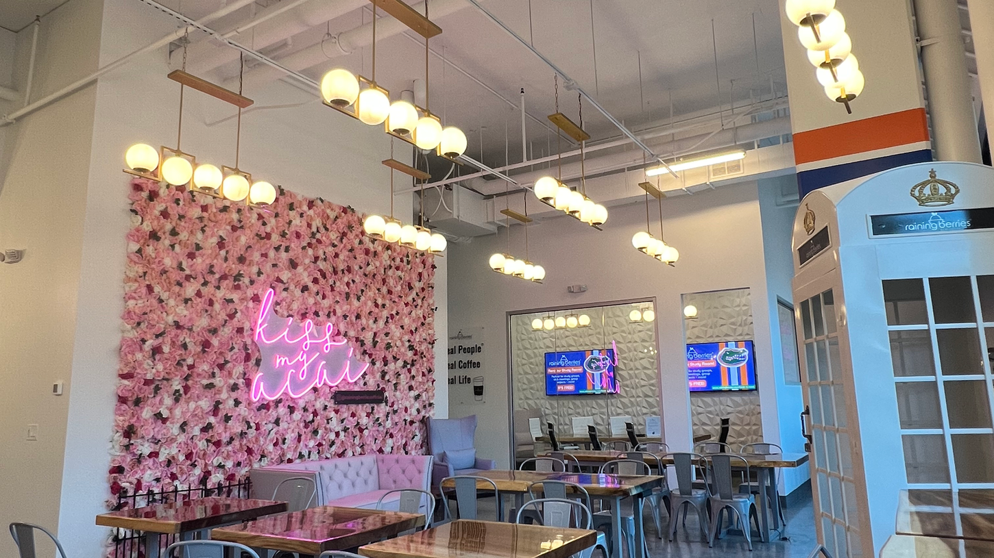 Raining Berries Gainesville, located at the Hub on Campus - University, is minutes away from the University of Florida. Our study room is the perfect spot for students to work and collaborate. Even better - you’ll have easy access to caffeine and delicious food while you work! We have the best vibes for brunch with friends & tons of quick healthy options for anyone who needs a boost before class!